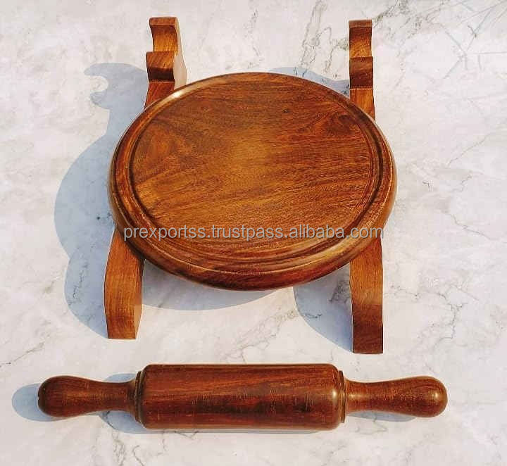 Prensa de tortilla de madera artesanal para cocina Almacenamiento y contenedor de alimentos rústicos