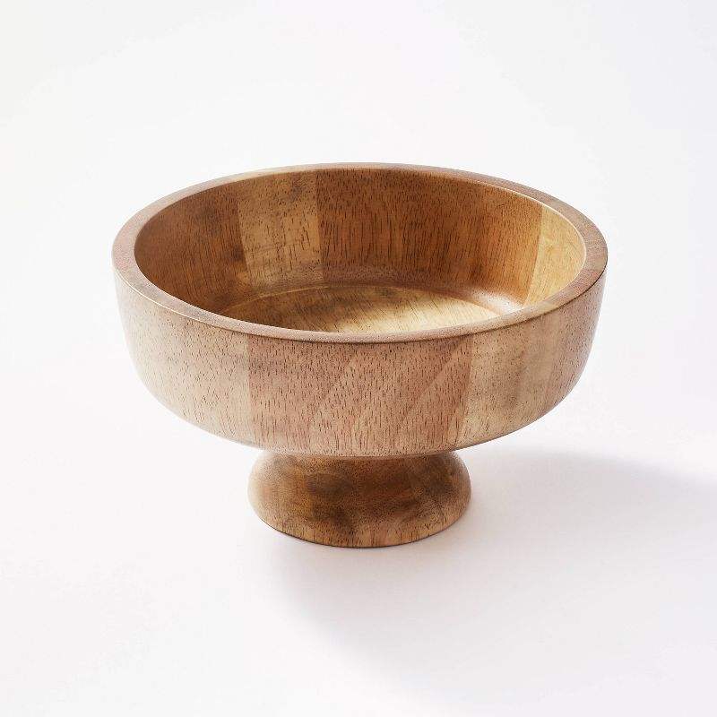Cuenco para servir de madera de mango rústico para mesa de comedor, cuenco de madera hecho a mano recién llegado para ensalada, fruta o exhibición decorativa