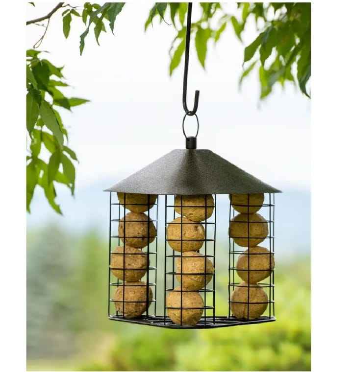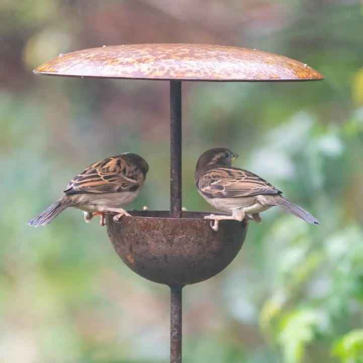 Comedero de Metal Rústico para Pájaros, con Soporte y Cubierta para Lluvia, para Jardín, Patio, Terraza y Paisajismo