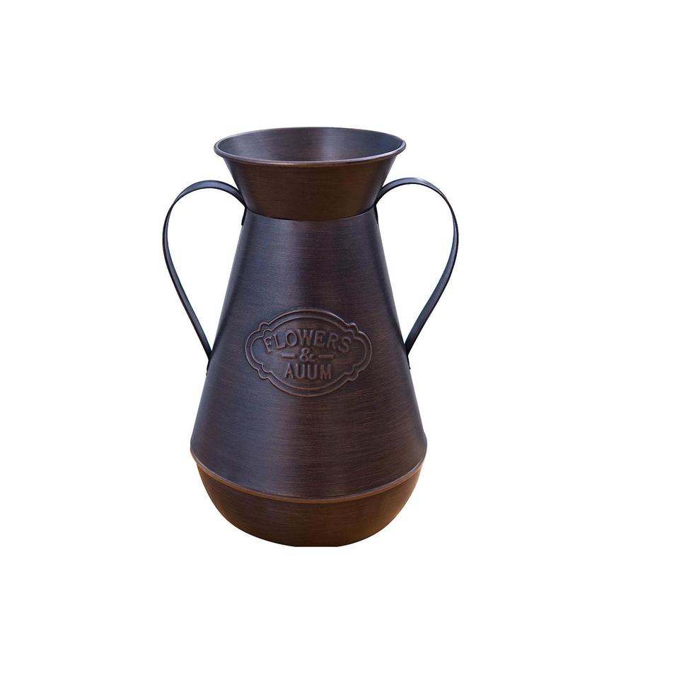 Jarrón de Metal Rústico con Asas, Jarra Decorativa de Hierro para Flores Secas | Jarrón Decorativo de Bronce Antiguo para Mesa de Estilo Rústico