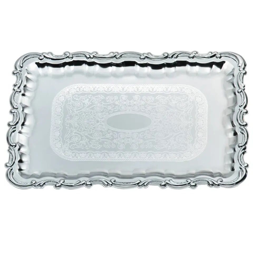 Elegante Bandeja de Servicio con Acabado de Espejo, Cristal Decorativo Estilo Campestre Francés, para Bodas, Banquetes y Eventos
