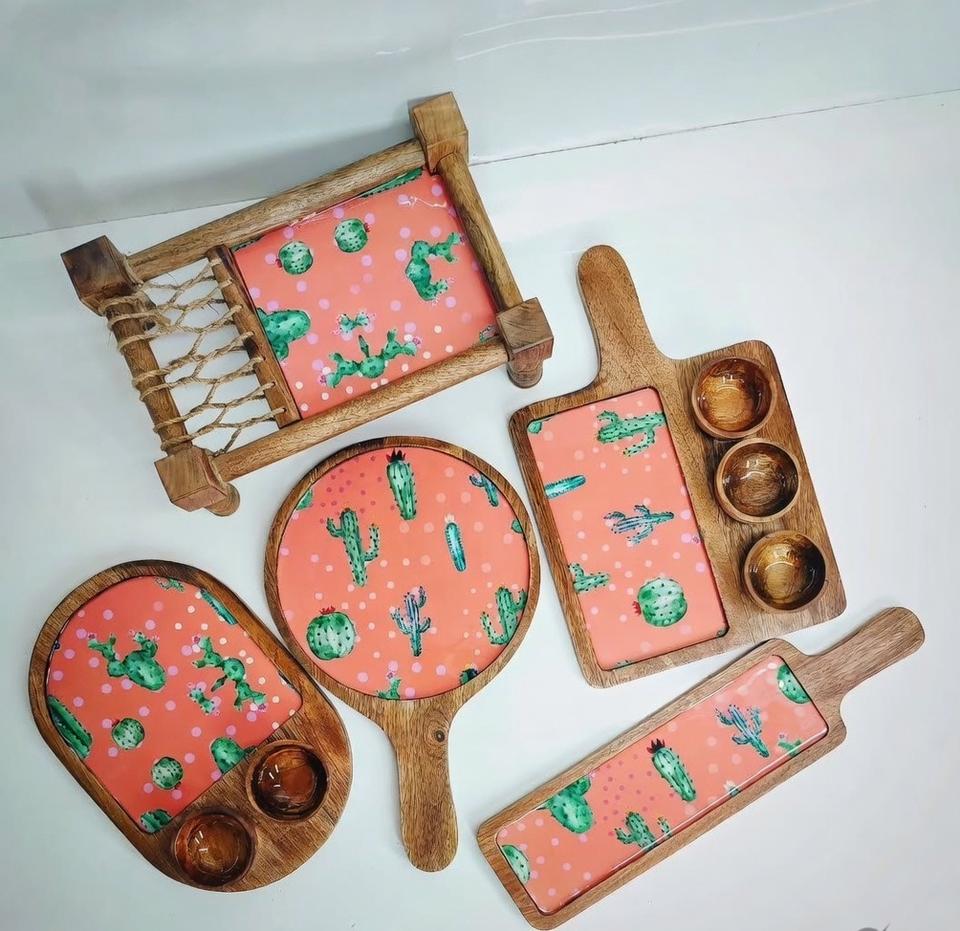 Juego de vajilla rústica de madera natural con bandeja para pizza, tablas de cortar, bandeja para servir postres y alimentos al mejor precio