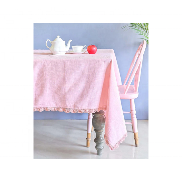 Rústico Rosa 100% algodón bordado ecológico nuevo mantel certificado GOTS 60x108 pulgadas lavable a máquina duradero perfecto