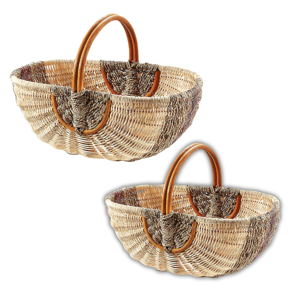 CESTA RÁSTICA DE COSECHA DE RATÁN CESTA DE PICNIC de Vietnam con asas para facilitar el transporte y almacenamiento Ideal para la recolección de frutas