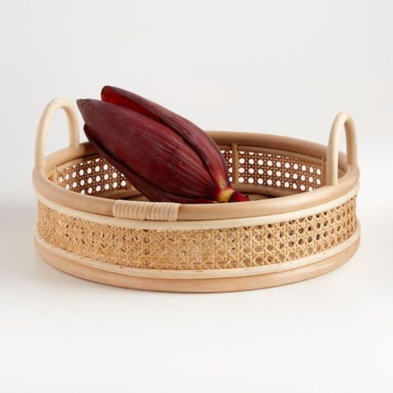 Bandeja de servicio de ratán rústico, bandeja decorativa tejida a mano Natural para comedor, entretenimiento y estilo doméstico