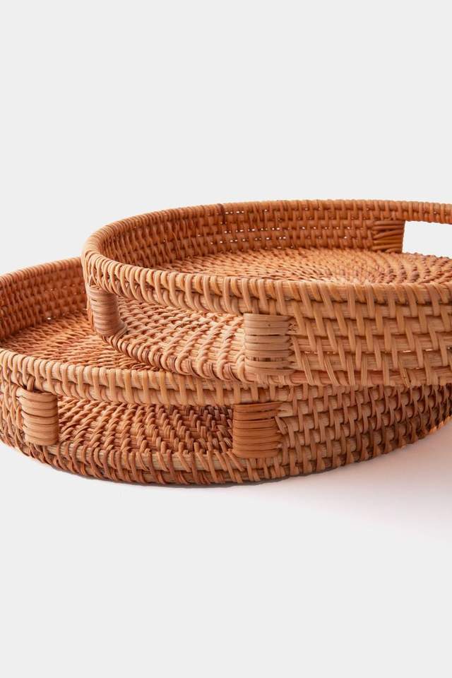 Bandeja rústica de ratán con tamaño personalizado para cocina y comedor | Cesta de servicio y almacenamiento artesanal