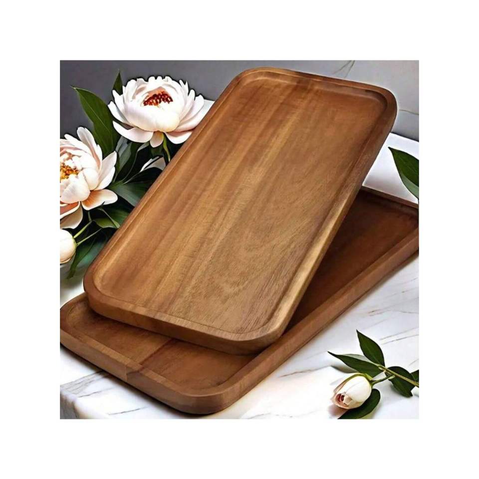 Bandejas Rectangulares Rústicas de Madera para Decoración del Hogar, Juego de Bandejas para Servir en la Cocina, Bandejas de Madera Hechas a Mano para Fiestas, Regalo de Boda
