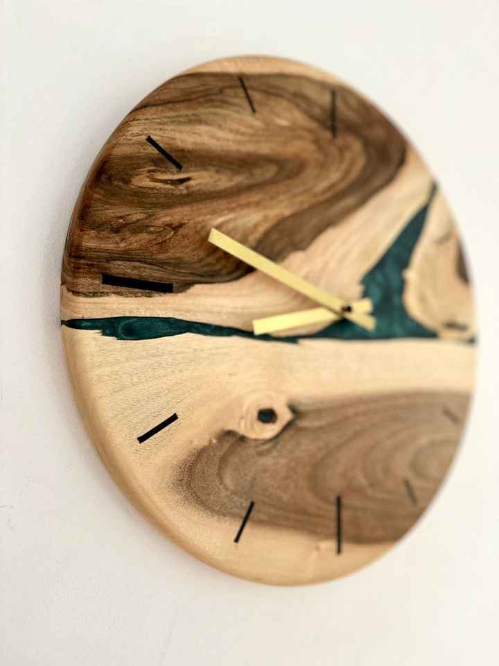 Reloj de Pared Rústico de Resina y Madera con Elementos de Madera Natural, Detalles Hechos a Mano y un Estilo Moderno y Elegante