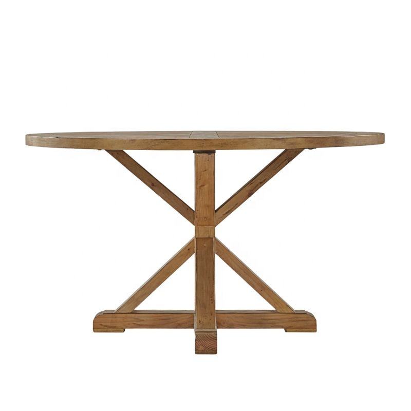 Mesa de Comedor Redonda Rústica con Base de Pedestal en Color Madera Natural para Comedor Moderno y Conjuntos de Restaurante para Jardín Exterior