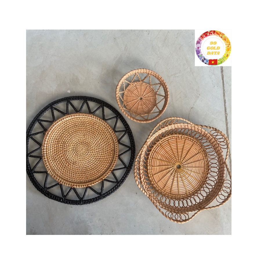 Placa de cargador de ratán redonda rústica, tejido Natural mantel, vajilla decorativa hecha a mano de Vietnam