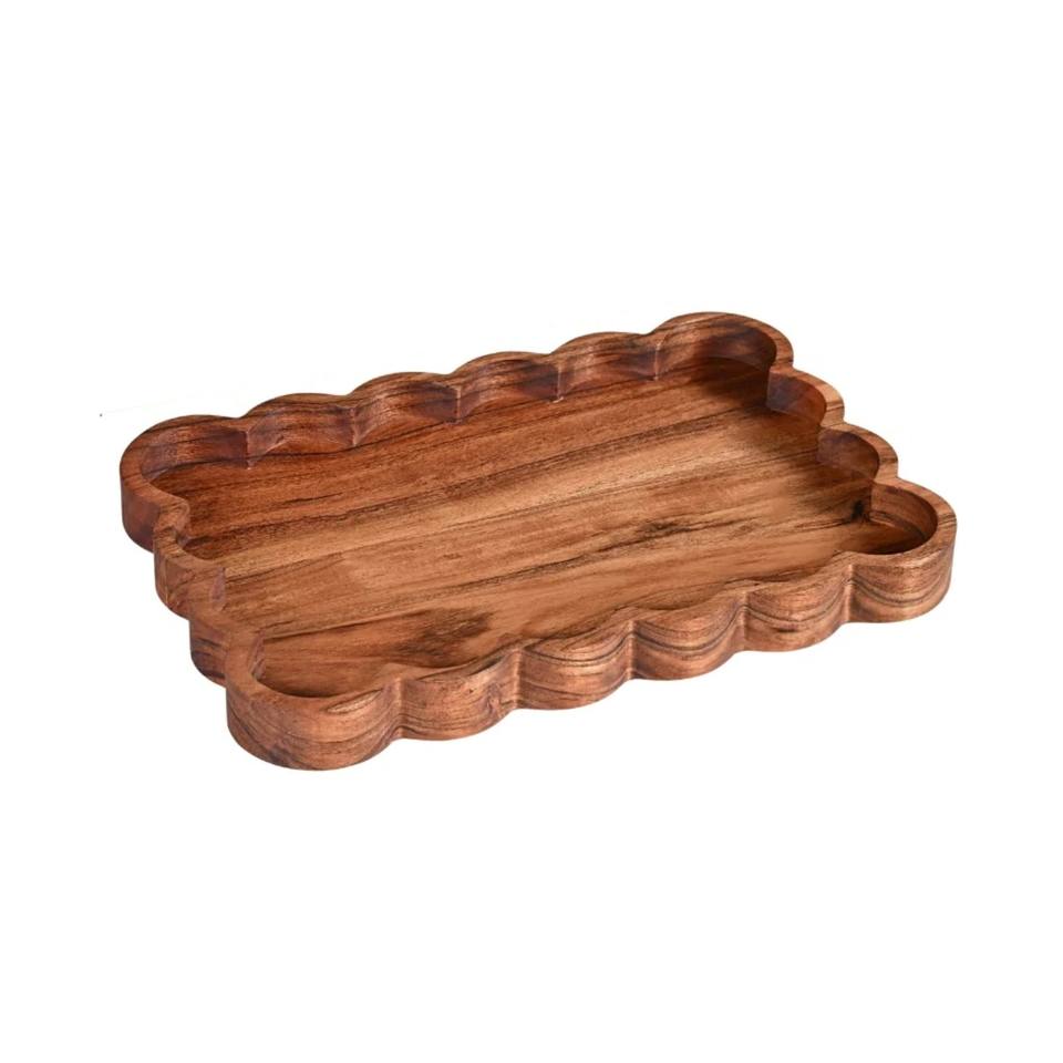 Product name:Scallop Acacia Serving Tray Platter made in Vietnam