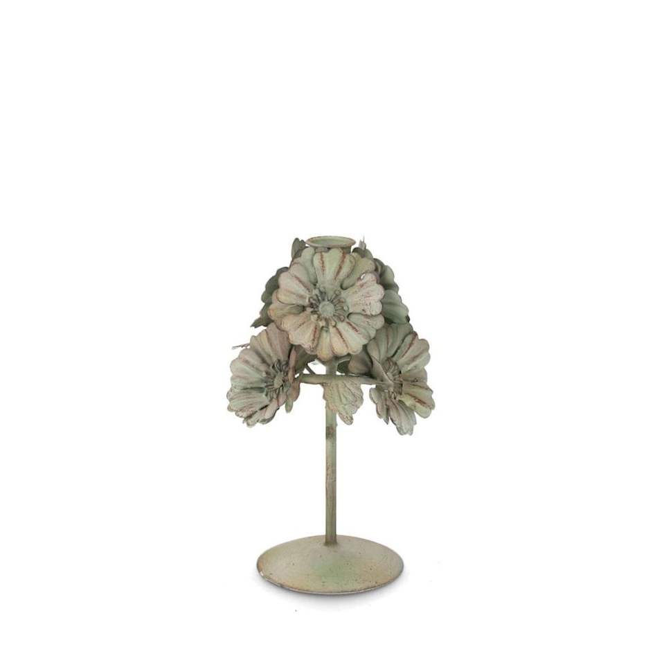 Candelabro Rústico Estilo Shabby Chic con Rama de Olivo, Escultura de Metal Verdigris Desgastado, Portavelas para Decoración de Casa de Campo
