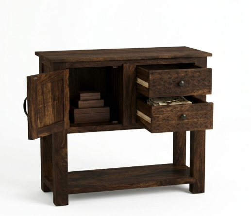 Mesa Consola Rústica de Madera de Mango Sólida, Ecológica y Duradera, Aparador Vintage de Mediados de Siglo y Buffet de Estilo Victoriano