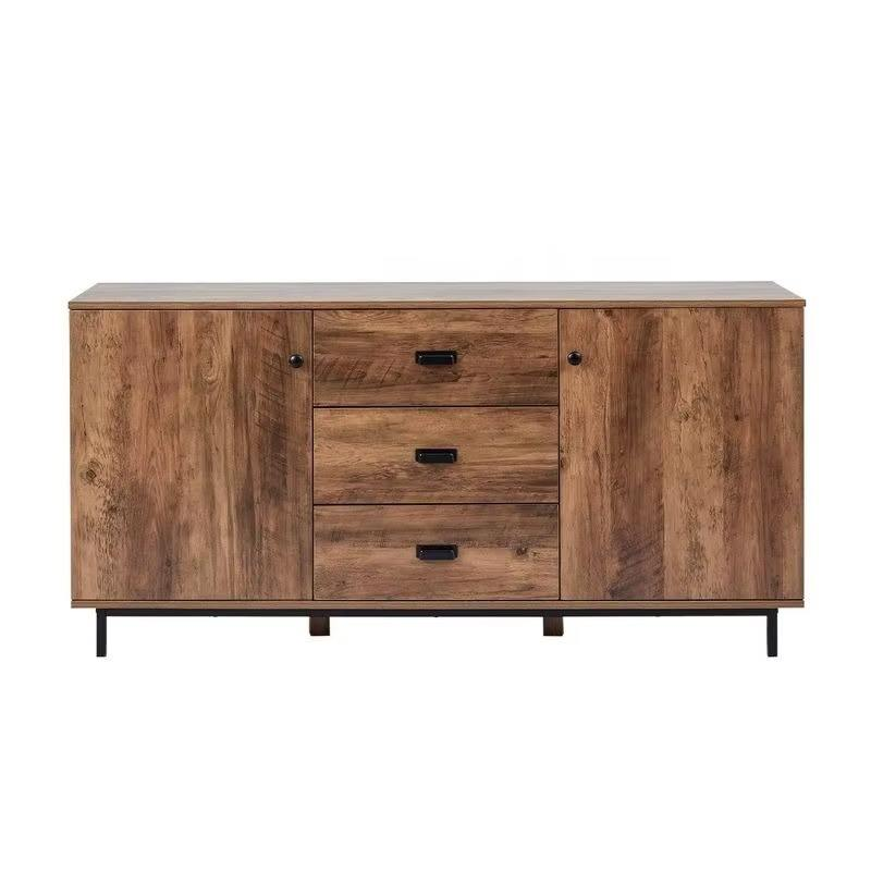 Aparador rústico de madera maciza con puertas talladas a mano y almacenamiento funcional para artículos esenciales de comedor