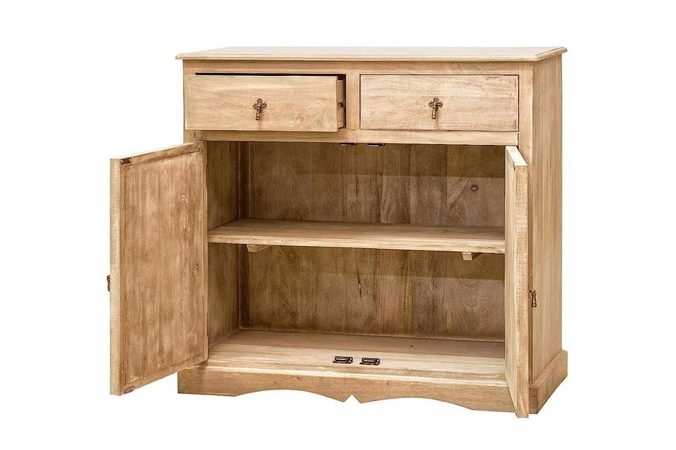 Madera maciza rústica dos puertas dos cajones tallado Buffet aparador Mango madera gabinete almacenamiento muebles