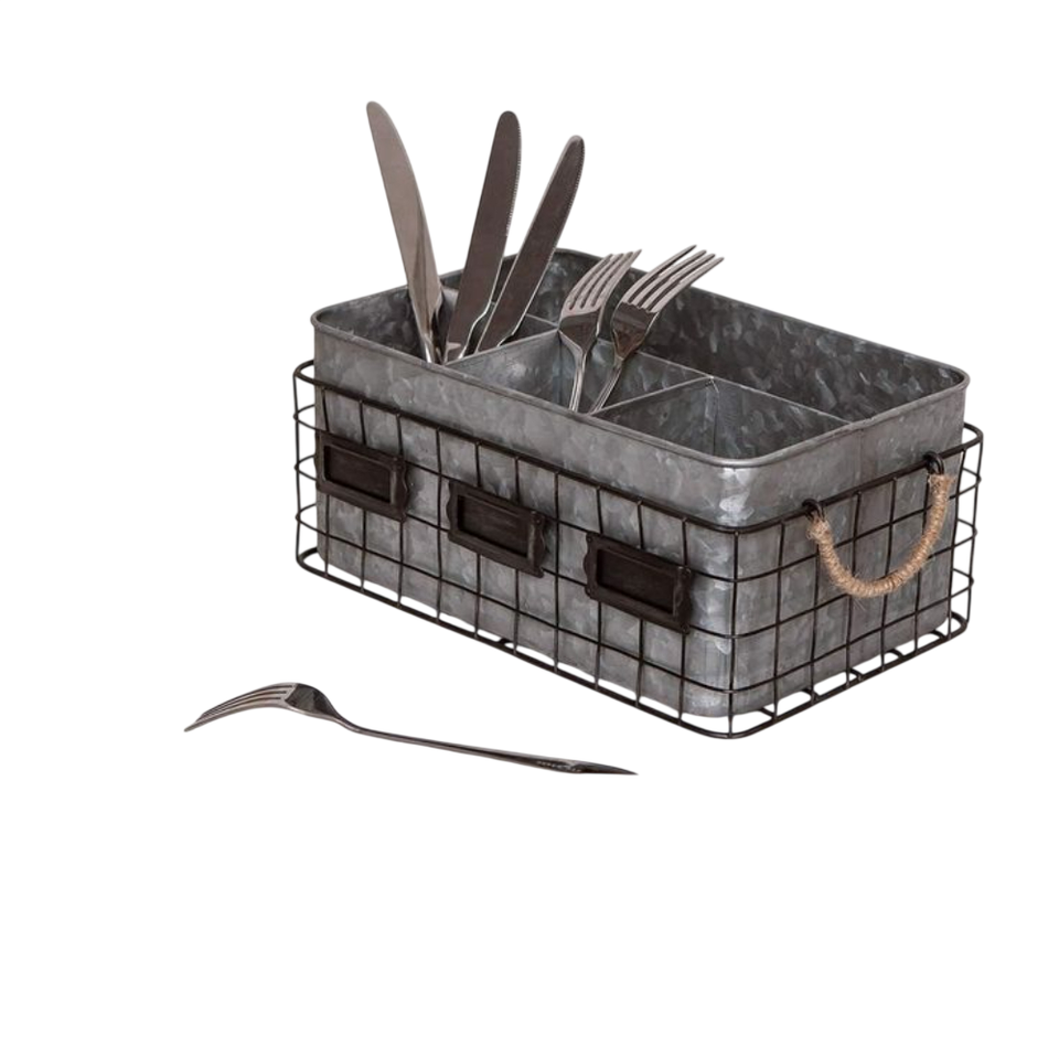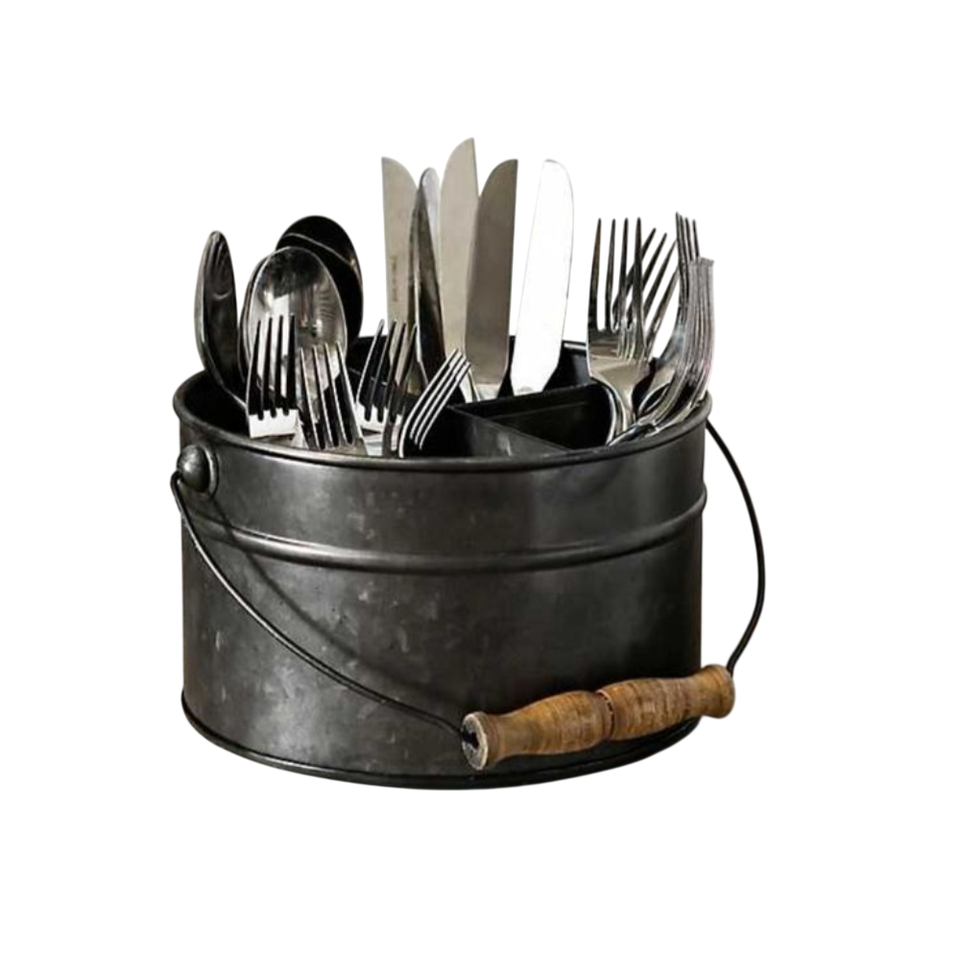 Porta Utensilios de Acero Galvanizado Estilo Rústico, Organizador de Cubiertos Metálico de 3 Compartimentos con Asa, para Mesa de Cocina o Comedor