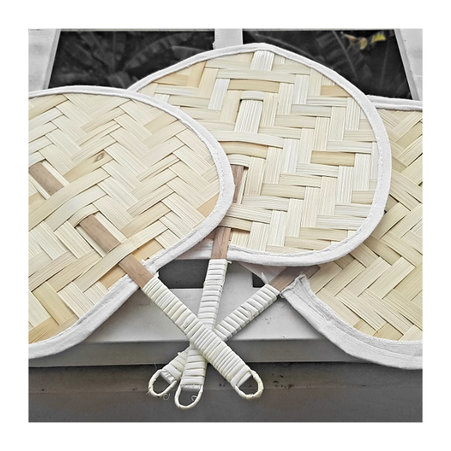 Abanico de mano de bambú en forma de hoja de estilo rústico, venta al por mayor, ecológico, hecho a mano en Vietnam para bodas, eventos de festivales y decoración