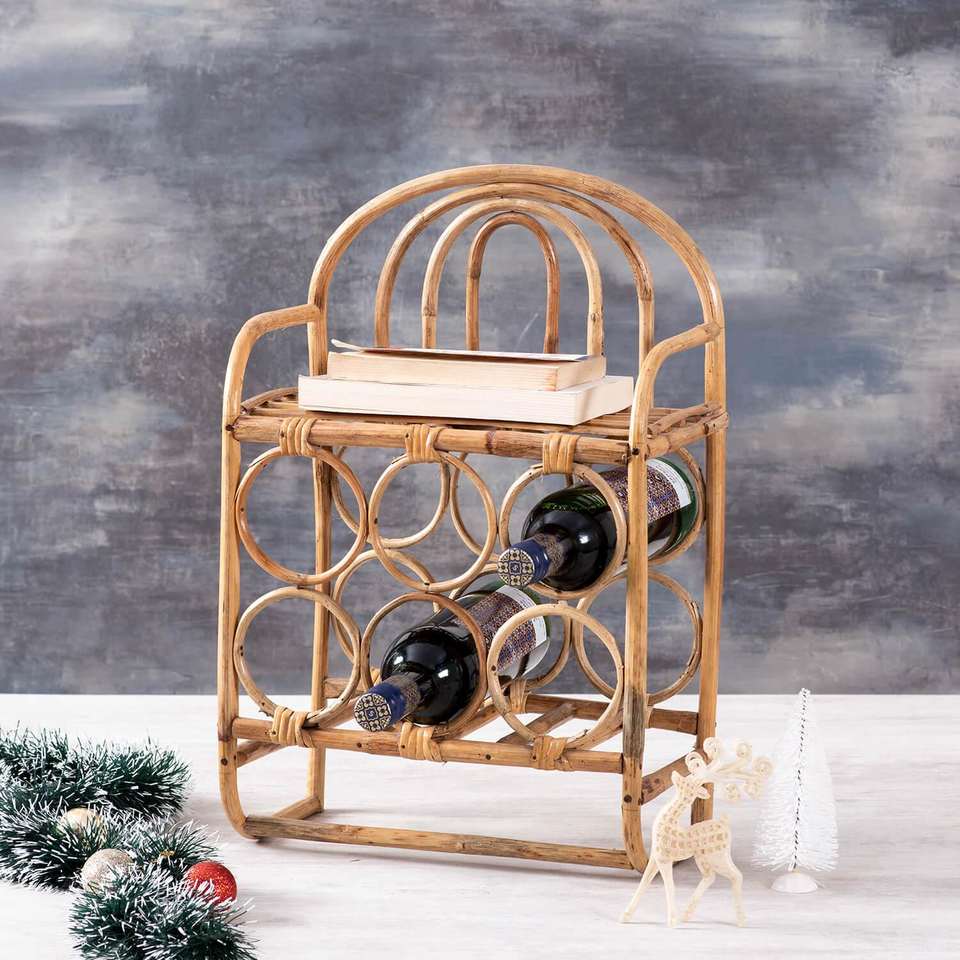 Soporte para botellas de vino de ratán natural, estilo rústico, con mango superior, Decoración de mesa hecha a mano en Vietnam