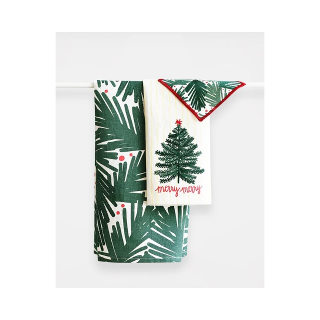 Paño de Cocina de Algodón 100% con Bordado de Pino Estilo Rústico, 18x28 Pulgadas, Tejido Waffle de Golf, Ultra Absorbente, Sostenible, para Uso Diario en el Hogar