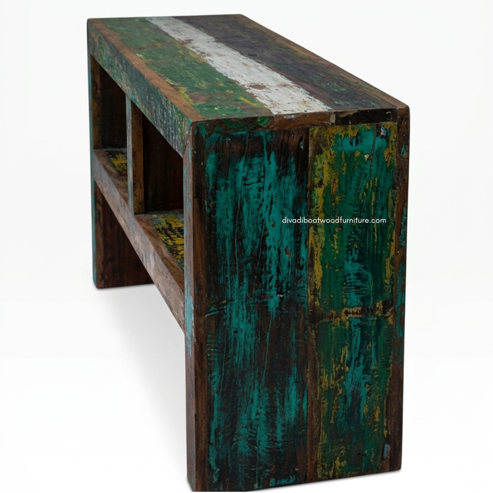 Mesa Consola de Madera de Teca Rústica, Ecológica, Hecha a Mano, Duradera, con Almacenamiento, para Sala de Estar, Entrada, Apartamento, Hotel, Mueble para el Hogar
