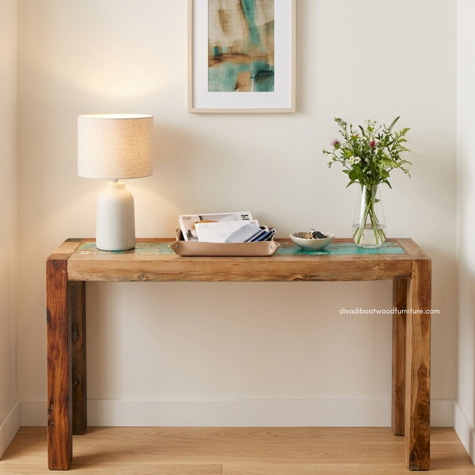 Mesa Consola Rústica de Madera de Teca para Sala de Estar, Entrada, Apartamento, Hotel, Muebles para el Hogar, Madera Reciclada de Barco, Estilo Costero, Venta al por Mayor