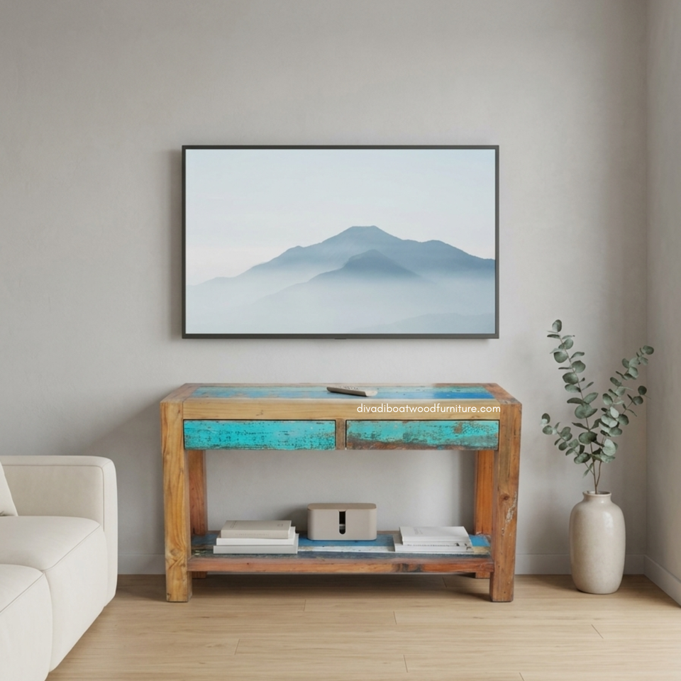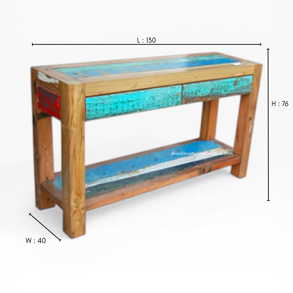 Mesa Consola Rústica de Madera de Teca con 2 Cajones para Sala de Estar, Entrada, Apartamento, Hotel, Muebles para el Hogar, Madera de Barco Reciclada