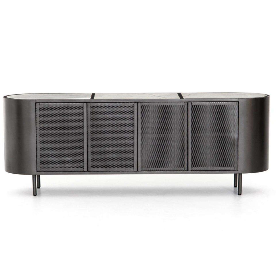 Aparador rústico tradicional de madera maciza con tallado a mano detallado y prácticas estanterías para el comedor