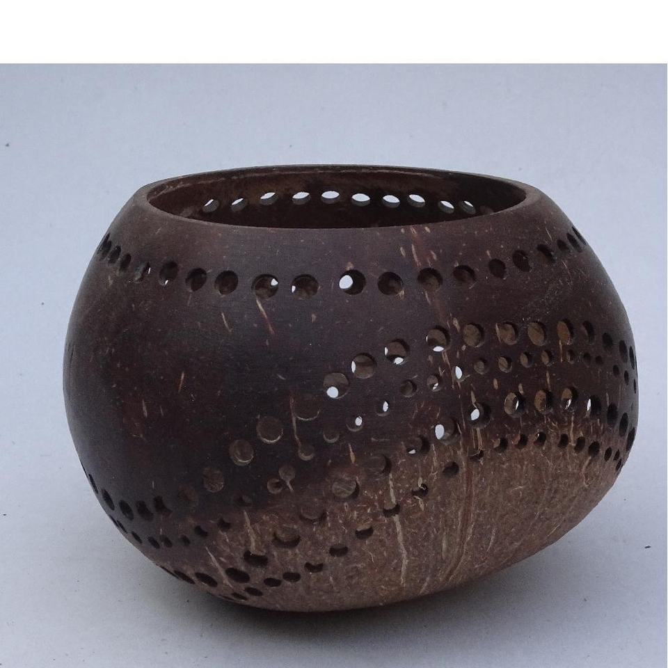 Portavelas de madera de concha de coco votiva rústica portavelas de luz de té de madera votiva para decoración de mesa de piezas centrales