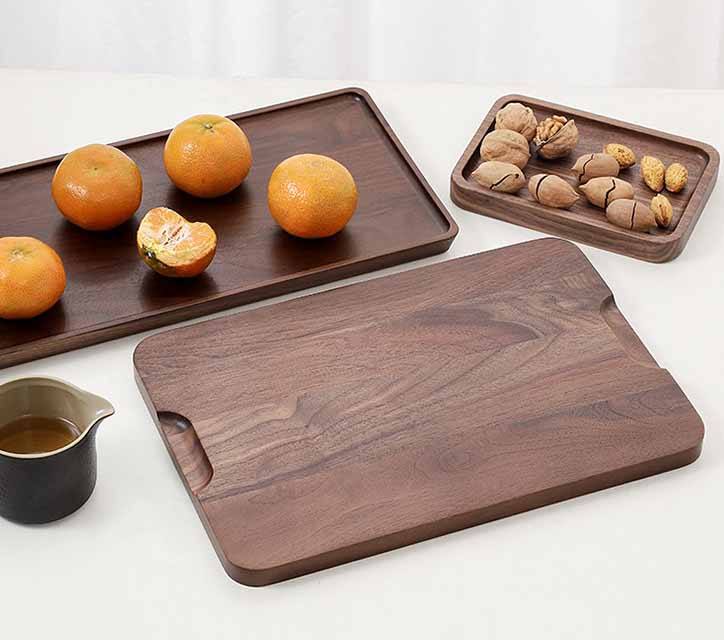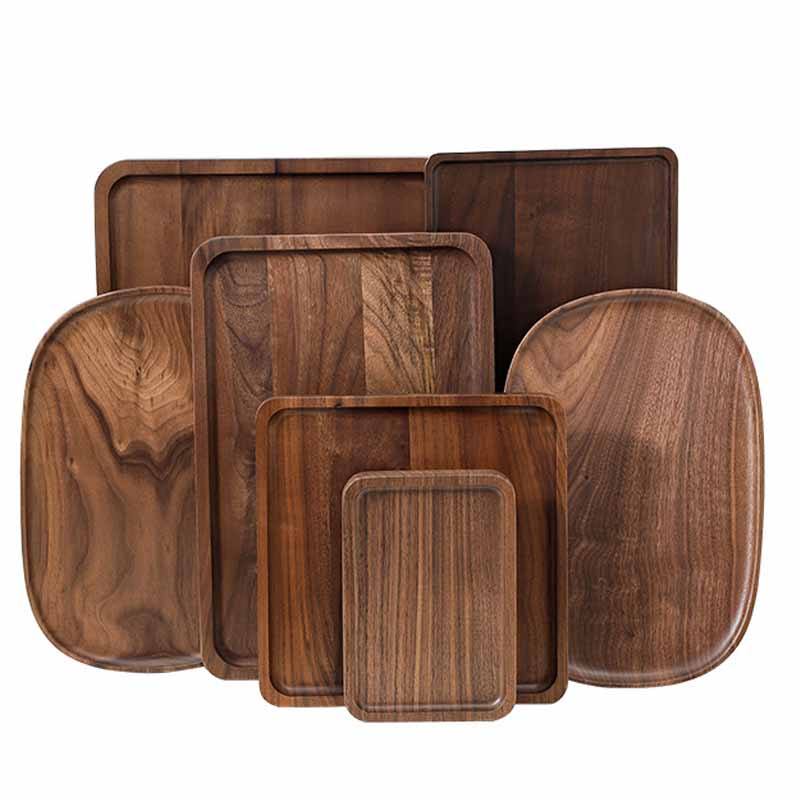 Bandeja de Servir Rústica de Madera Maciza de Nogal, Ovalada, Redonda, Rectangular, Decoración de Cocina, Bandeja de Madera para Postres, Té, Café