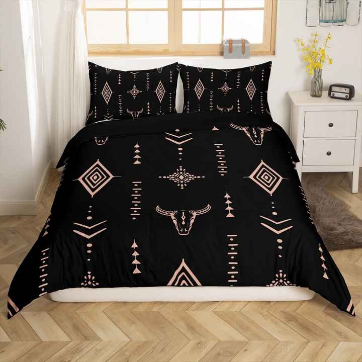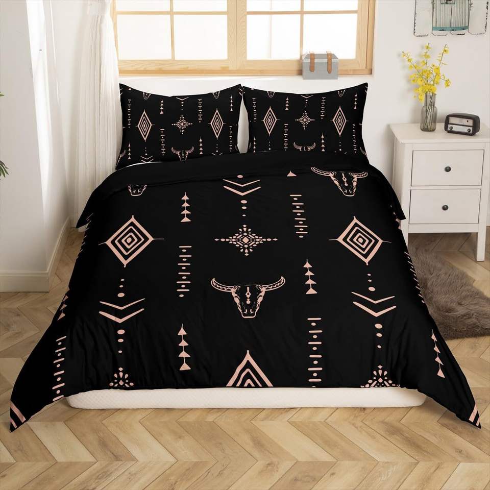 Rústico occidental de tamaño completo Tribal Bull Skull ropa de cama sofá mantas de felpa polar étnico azteca vaca patrón mantas para regalos