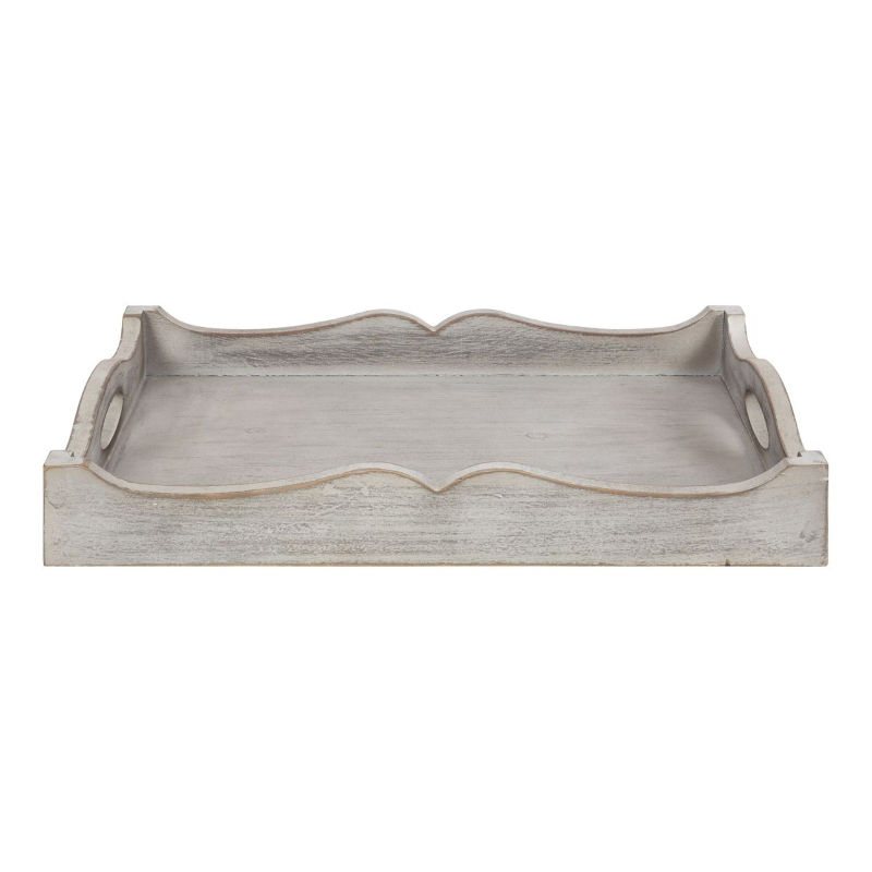 Bandeja de Servir de Madera Rústica Blanqueada con Asas, Estilo Rústico, Decorativa, Rectangular, para Otomana
