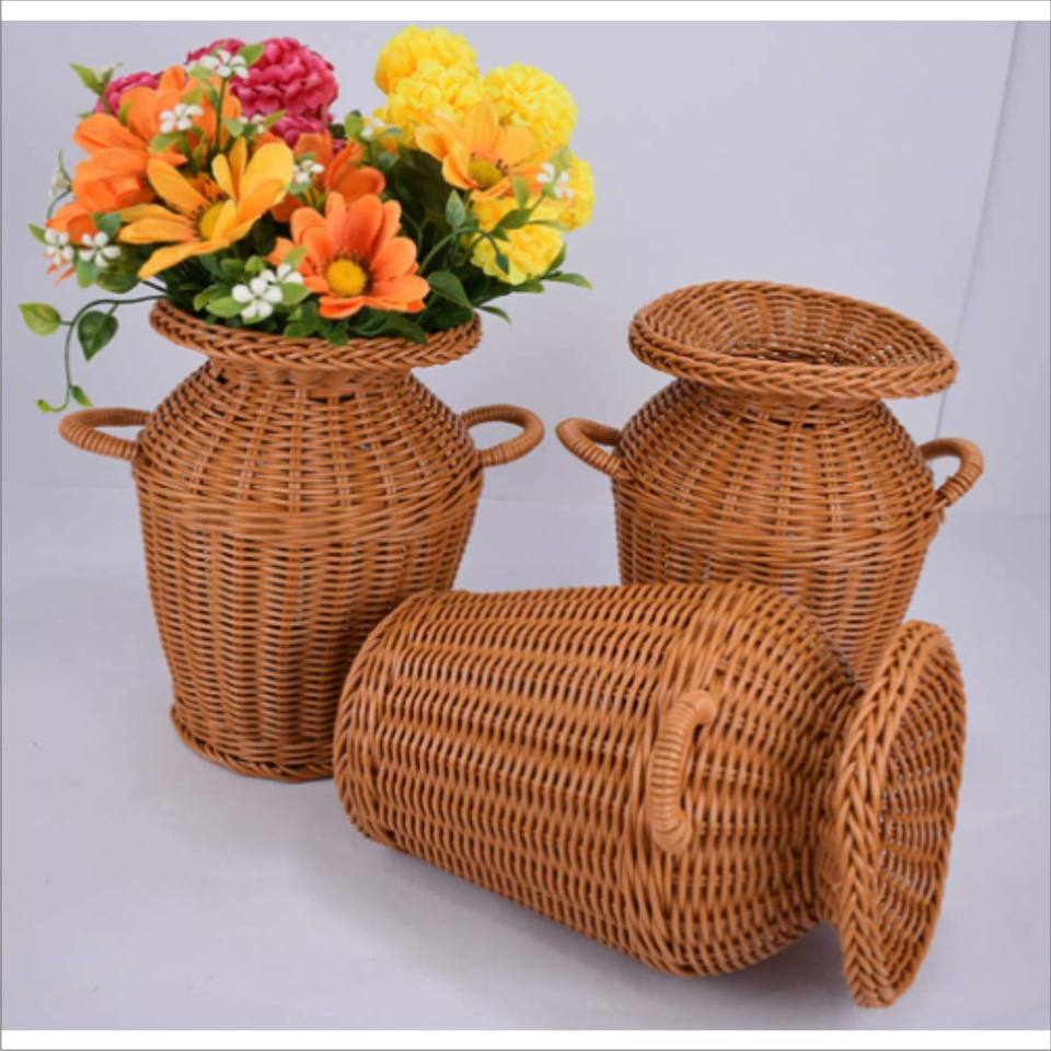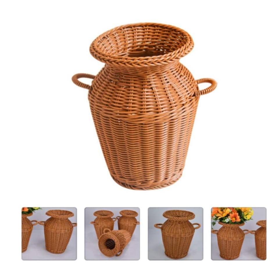 Jarrón rústico de mimbre tejido, jarrón minimalista de ratán para flores secas, centro de mesa moderno estilo granja, jarrón decorativo de ratán natural
