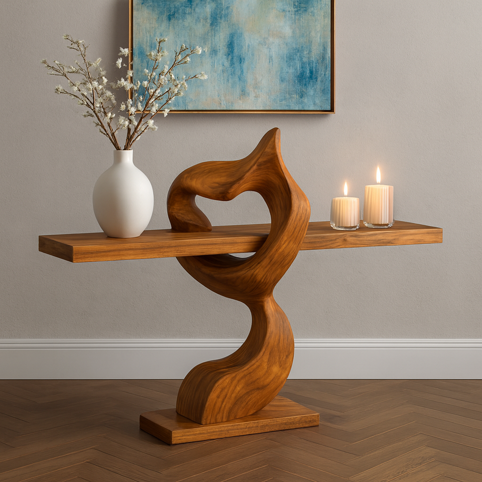 Mesa Consola Rústica de Madera, Diseño Inspirado en Madera Natural, Hecha a Mano, Decoración Única para Entrada, Mueble de Madera Maciza Personalizado, Regalo