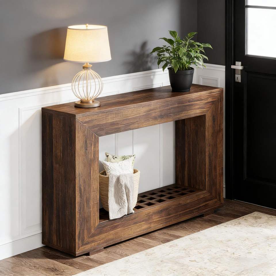 Mesa Consola Rústica de Madera Estilo Granja con Almacenamiento para Entrada o Sofá - Categoría de Producto: Mesas Consola