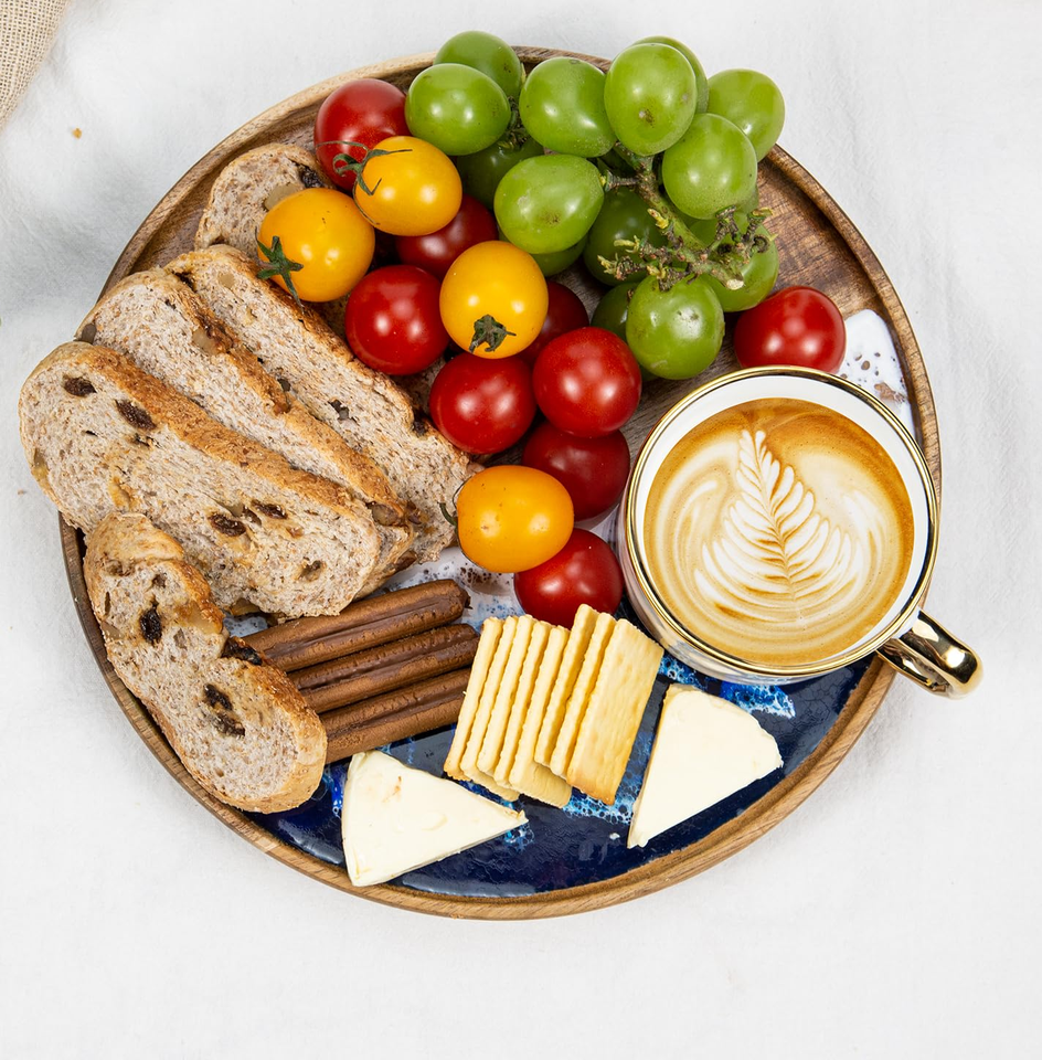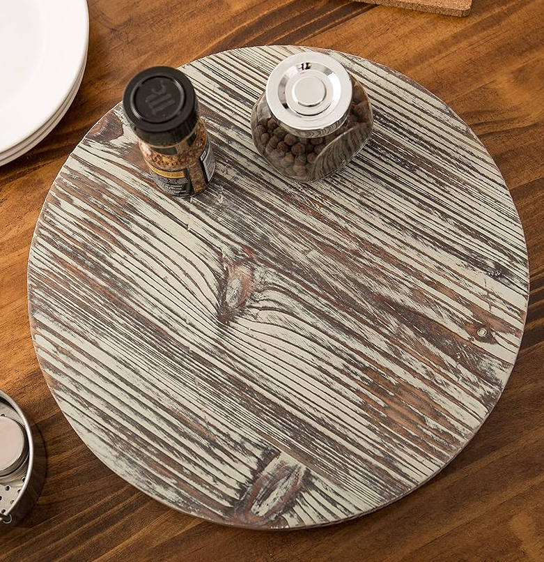 Bandeja Giratoria Rústica Ecológica de Madera de Acacia, Apta para Lavavajillas, Diseño Redondo de Alta Calidad para Uso en el Hogar y Restaurantes