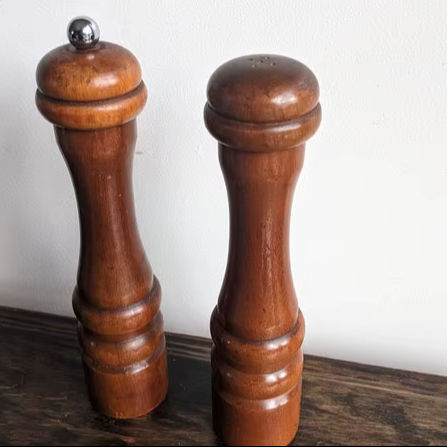 Juego de Salero y pimentero de madera rústica, Decoración de cocina torneada a mano, agitadores de madera Natural, decoración rústica hecha a mano