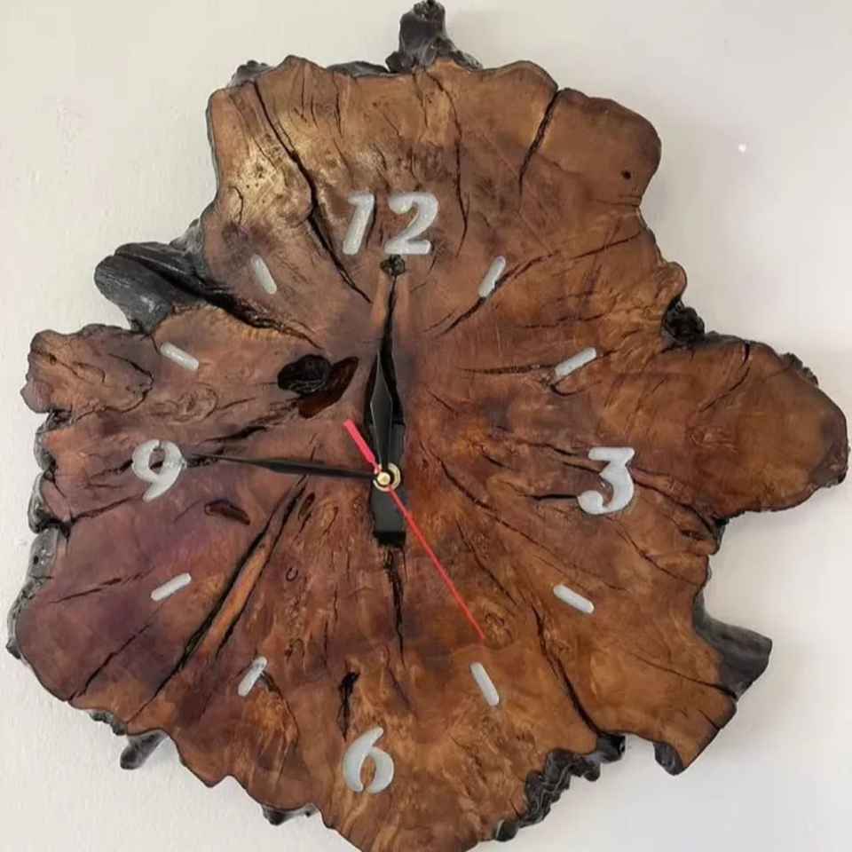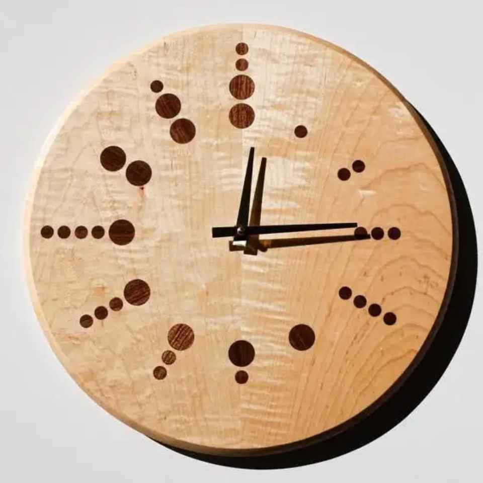 Reloj de Escritorio Cuadrado de Madera Rústica, Diseño Mecánico con Movimiento de Onda, Números Arábigos Negros, Números Invertidos Únicos, Base de Metal