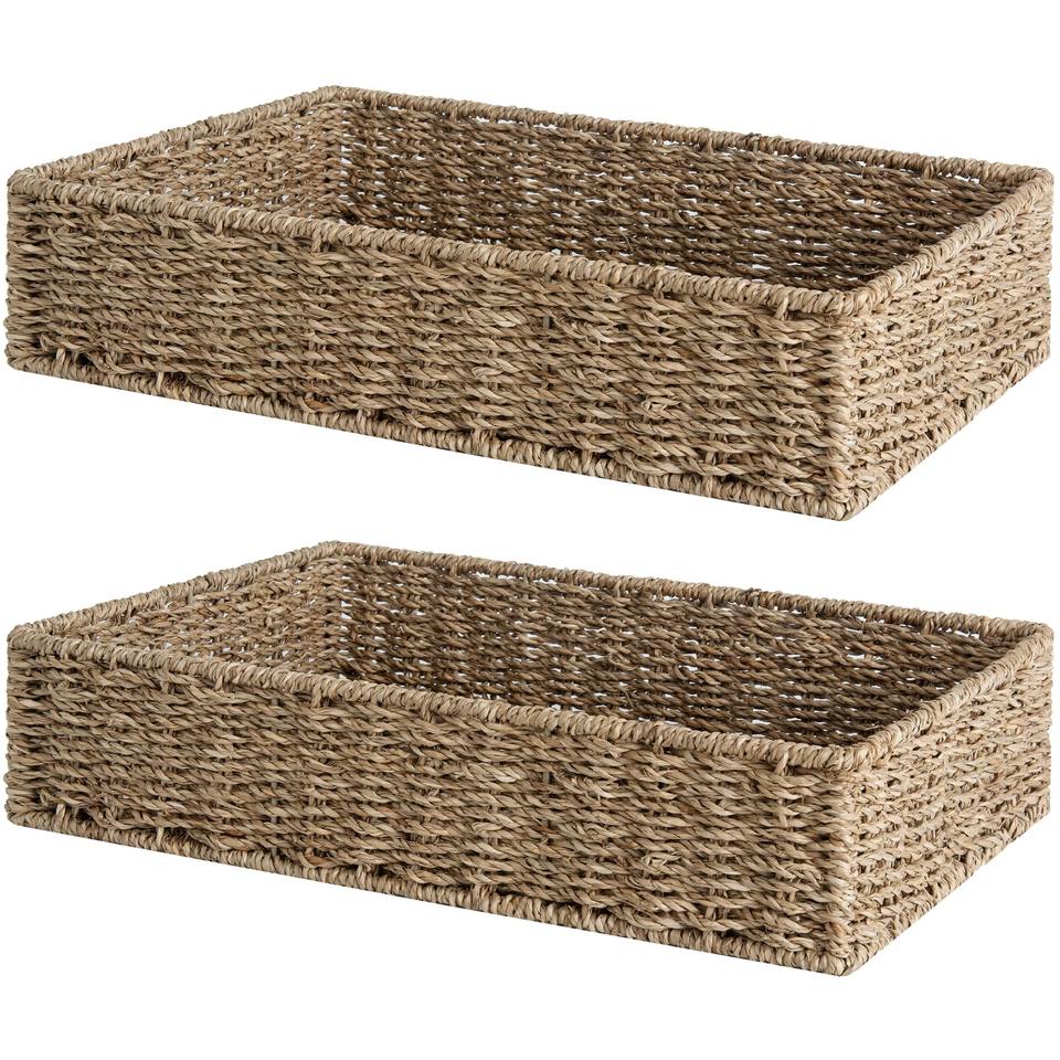 Cesta rústica rectangular de junco marino:Tamaño: L15,8xW11,3xH3,5 pulgadas