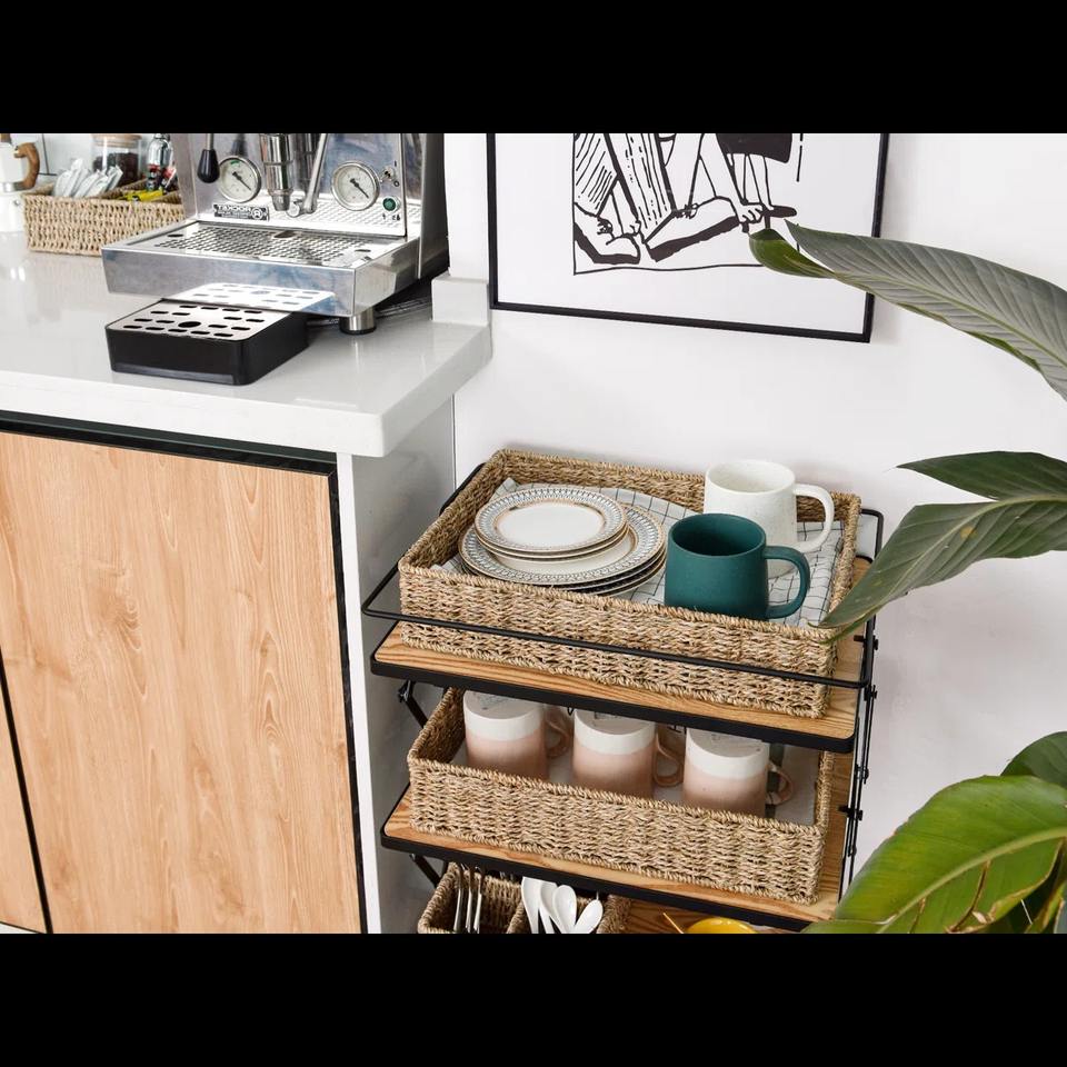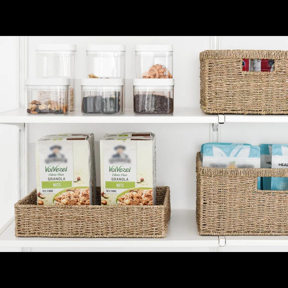 Cesta rectangular rústica de junco marino, cesta de almacenamiento hecha a mano, venta al por mayor, ecológica, hecha en Vietnam