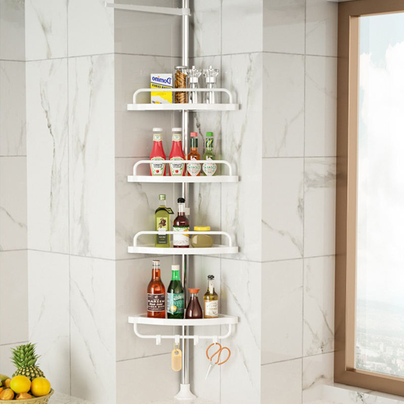 Estante de Ducha Esquinero Giratorio Resistente a la Oxidación, Estante de Almacenamiento de 4 Niveles Ajustable para Baño, Estante de Almacenamiento para Inodoro con Barra de Tensión