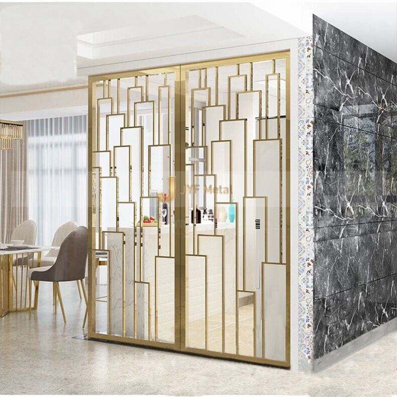 Biombo Decorativo Multifuncional Móvil de Acero Inoxidable Translúcido, Resistente al Óxido y al Agua, con Diseño Personalizado para Hotel