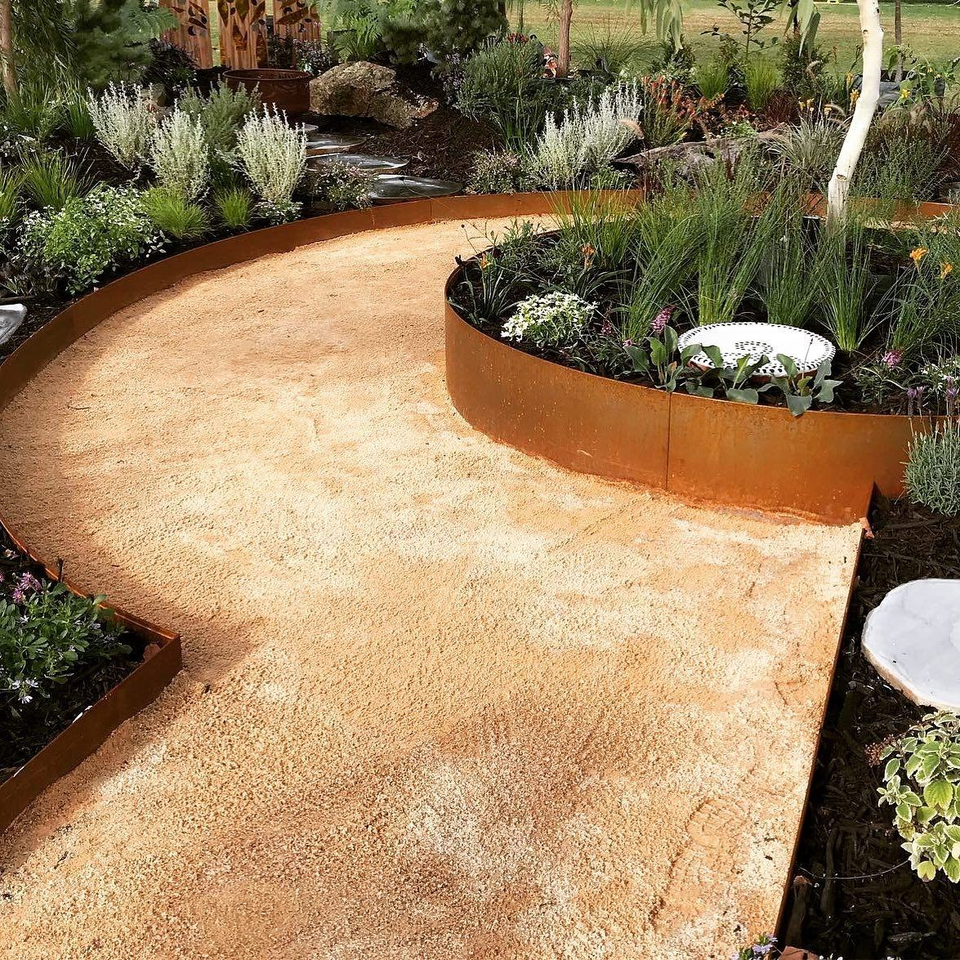 Borde de jardín oxidado para paisajismo, delimitador de macizos de flores y paisajes.
