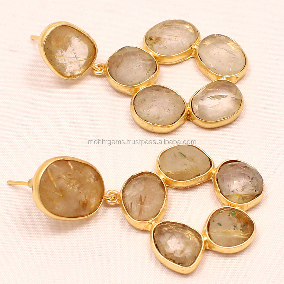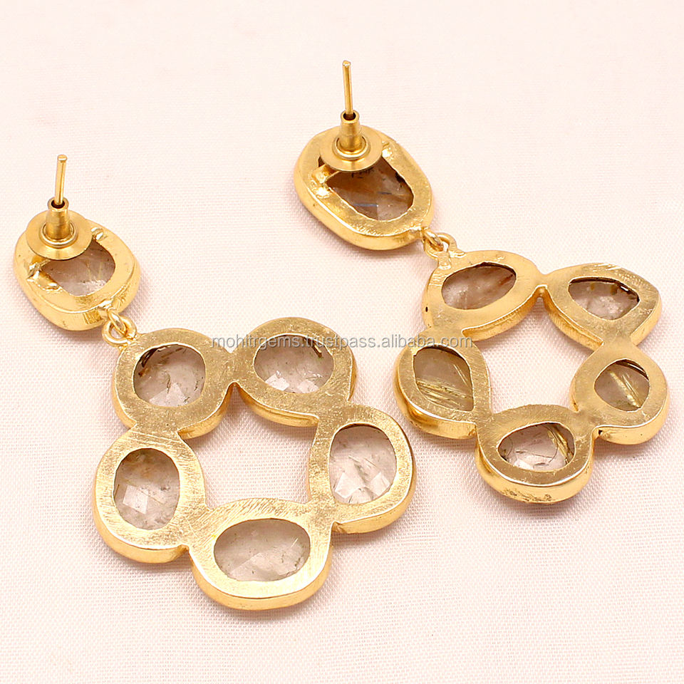Pendientes de Ágata Chapados en Oro Mohit con Círculo Redondo y Orificio, Hermosos y Clásicos para Mujer