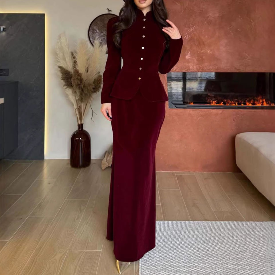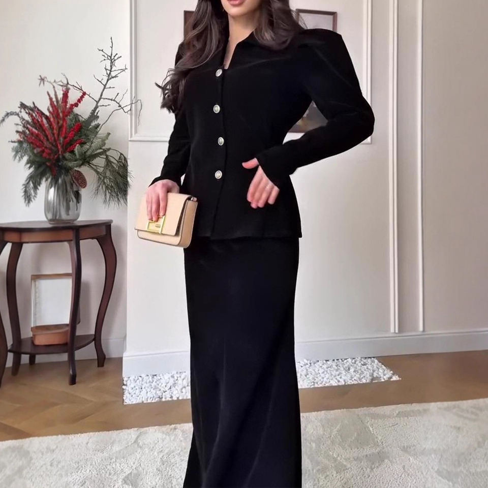 Conjunto de Vestido Largo con Cuello en V y Botones, Estilo Europeo, para Mujer, Nueva Colección de Otoño, Tallas S-2XL, Venta al Por Mayor