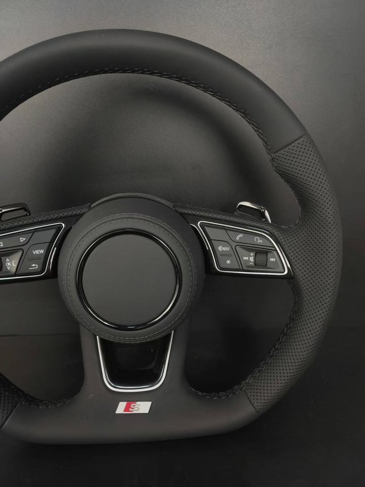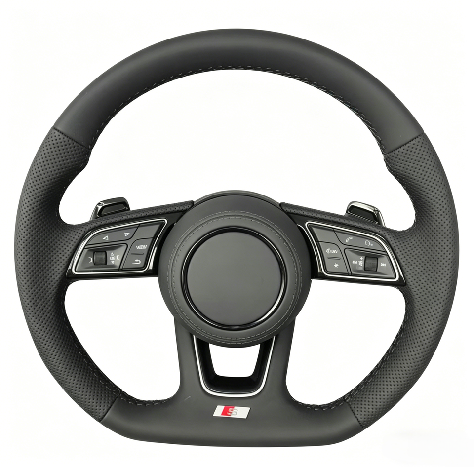 Volante Deportivo de Cuero Perforado S-Line para Audi TT A8 A3 A4 A5 A6 A7 Q3 Q5 Q7 Serie S/RS con Levas de Cambio