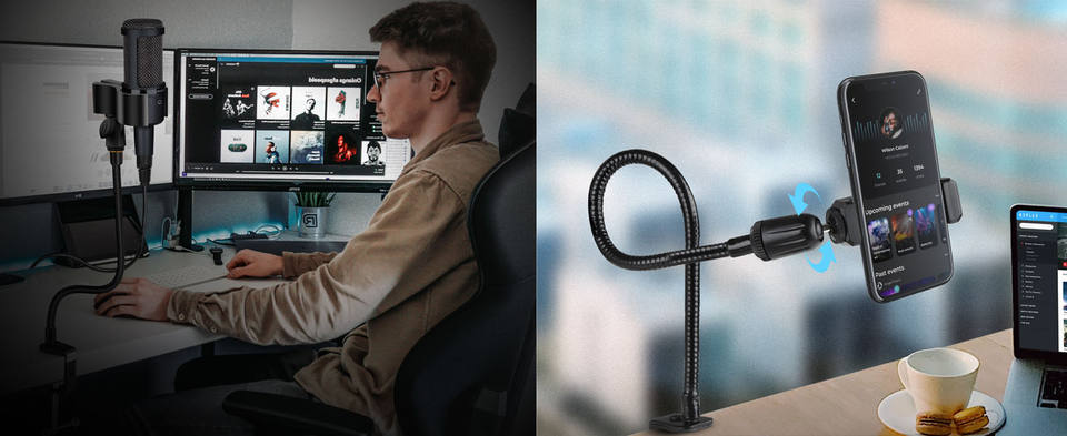 Soporte de micrófono de escritorio de cuello de cisne Flexible de 3/8 "5/8" adaptador de tornillo tipo Clip para Shure otros accesorios de teléfono de micrófono