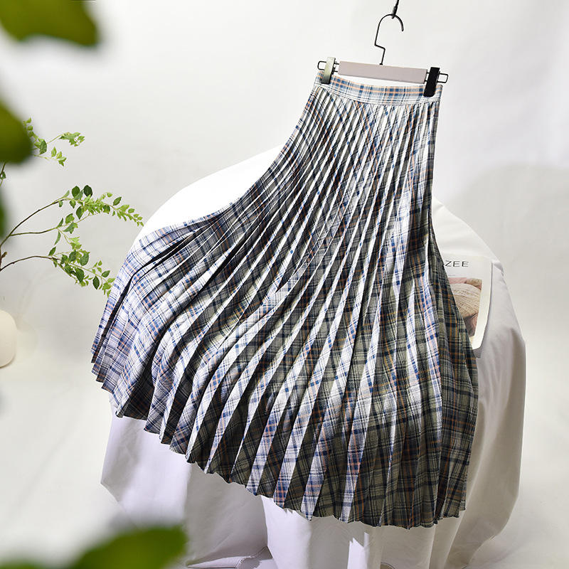 S0010A Primavera Nueva Moda Color Sólido Largo Talla Única Elástico Cintura Alta Faldas Plisadas para Mujer