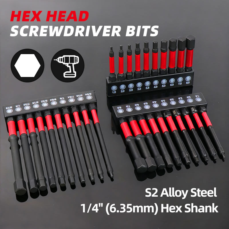 Puntas de Destornillador Hexagonales de Precisión S2 con Vástago Hexagonal de 1/4\", Puntas Magnéticas de 50 mm H1.5 H2 H2.5 H3 H4