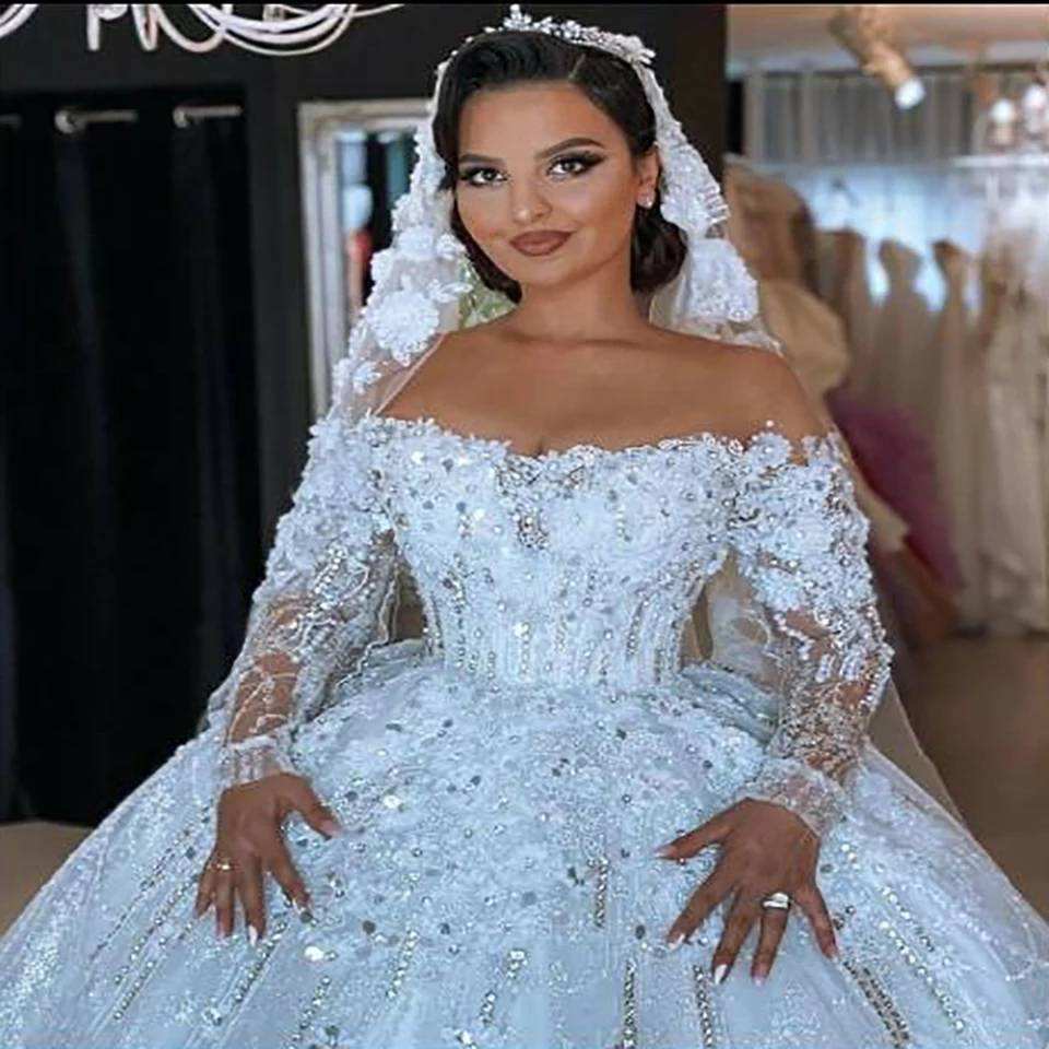 S3040F 2022 nuevo vestido de novia de manga larga de fiesta elegante de lujo con hombros descubiertos de alta calidad