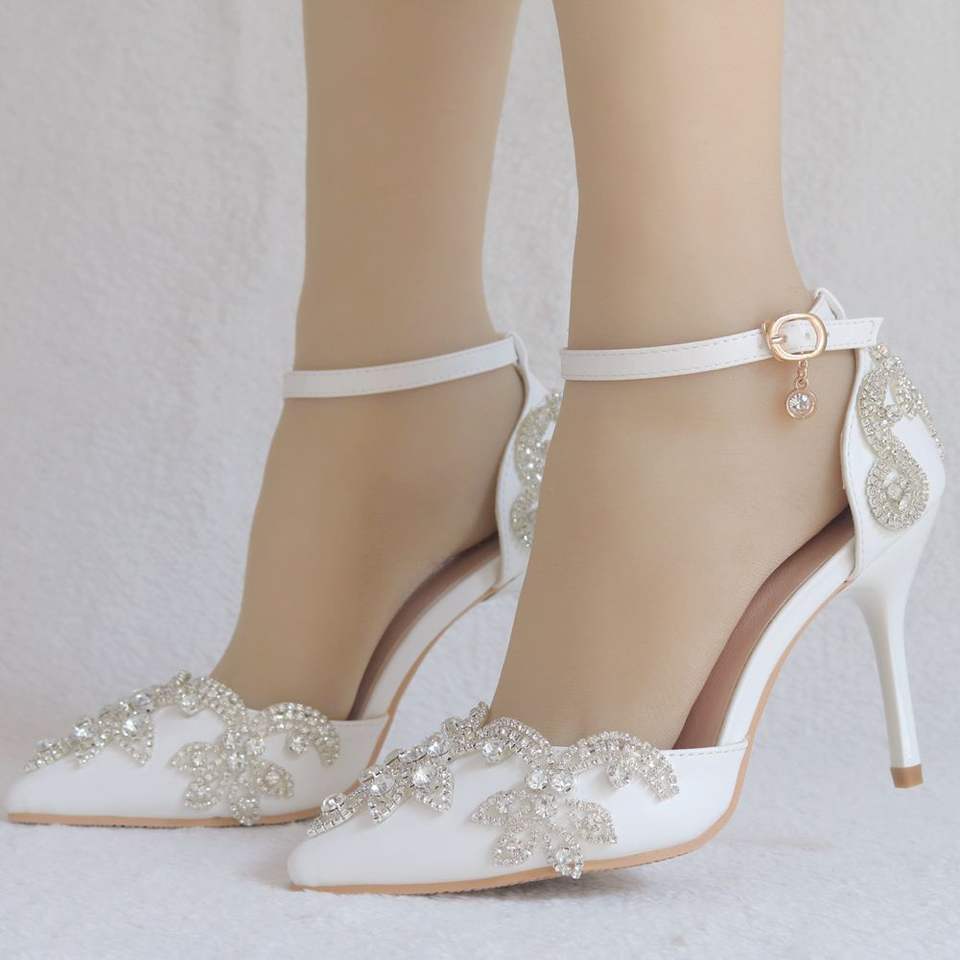 S448Q White Tassel Rhinestone Stiletto Pointed Toe Sandals